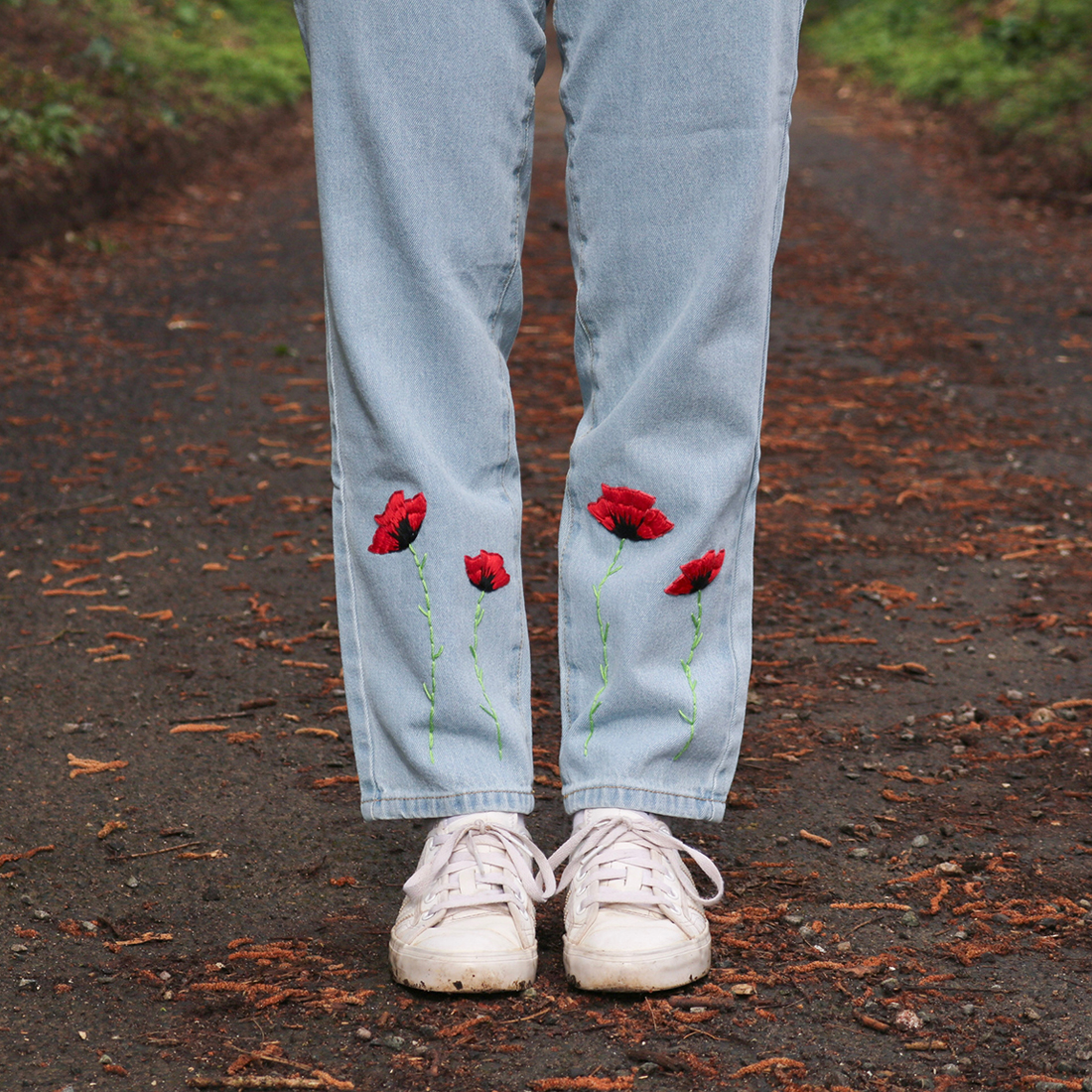 Jeans with a twist. Zoë Ware’s straight-leg jeans with hand-embroidered red poppies are perfect for cottagecore lovers—use code ENTREPRENISTA10 for 10% off (expires 12/31/25).