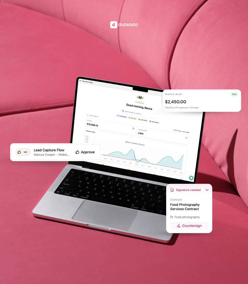 You started your business because you're great at what you do. But between proposals, invoices, scheduling, and contracts, the admin has a way of taking over. Dubsado puts your entire client experience in one place. Capture leads, send branded proposals, automate contracts and invoices, and keep every project moving without the mental load. Polished, branded, and completely on point.